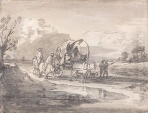 Study Of A Bullock Cart On A Winding Track With Nearby Cottage