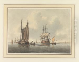 Thomas Goldsworth Dutton’s The Fleet at Anchor is a striking maritime masterpiece that captures the serene yet majestic presence of ships moored in a tranquil harbor. Painted in the mid-19th century during the golden age of British marine art, the work exemplifies Dutton’s meticulous attention to detail and his ability to convey both the grandeur of naval vessels and the atmospheric effects of light on water. The composition balances stillness and implied movement, with the anchored fleet reflecting on the calm surface, while billowing sails and distant horizons suggest the promise of voyage. Dutton, a prominent lithographer and marine painter, contributed significantly to the Romantic tradition, blending topographical accuracy with artistic sensibility. This piece stands as a testament to Britain’s naval heritage and remains a valuable example of 19th-century maritime art, appealing to both historians and art enthusiasts for its technical precision and evocative mood.