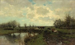 Late Autumn at Barbizon by Thomas Millie Dow captures the serene melancholy of the season with a poetic sensitivity characteristic of the Barbizon School. Painted circa late 19th century, this oil study reflects Dow’s Scottish Post-Impressionist roots fused with French plein-air techniques learned while studying under Jules Bastien-Lepage. The muted ochres and russets of autumnal foliage blend with silvery skies, evoking the transience of light that fascinated naturalist painters. Unlike Monet’s vibrant Impressionism, Dow’s subdued palette and textured brushwork align with Theodore Rousseau’s tonal realism, prioritizing atmospheric mood over decorative flourish. Though lesser-known than Millet or Corot, Dow’s works like this exemplify the transnational exchange between British tonalism and French landscape traditions, offering a quieter counterpoint to Impressionism’s theatricality.