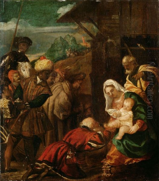 Titian's Adoration of the Magi (c. 1560) is a radiant masterpiece that immerses viewers in a scene of divine reverence and grandeur. The painting captures the biblical Three Kings presenting gifts to the infant Christ, bathed in Titian’s signature golden light that enhances the sacred atmosphere. Dynamic figures swirl around the Holy Family—Mary’s serene grace contrasts with the Magi’s awe, while background details hint at Venetian opulence. Created during Titian’s late period, the work showcases his mature style: loose, expressive brushstrokes and a rich palette that influenced Baroque artists like Rubens. As one of the Renaissance’s greatest colorists, Titian here blends spiritual narrative with earthly splendor, solidifying his legacy as a bridge between High Renaissance harmony and the emotional depth of Mannerism.