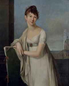 Portrait d'une femme artiste, avec l'Institut en arriere-plan