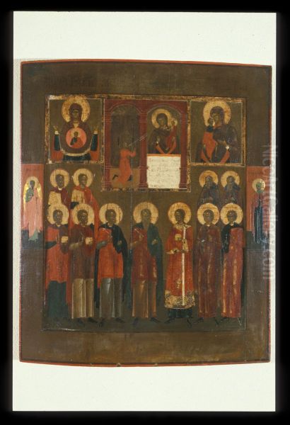 Bring the timeless beauty of unknown's Icon with Images of the Virgin and Standing Saints. into your home with a handmade oil painting reproduction. Carefully recreated on canvas by skilled artists using traditional techniques, this piece captures the delicate brushwork, subtle light, and vibrant color of the original masterpiece. With museum-level quality and rich texture, it brings elegance and artistic depth to any space. Enjoy free shipping and make this masterpiece a part of your personal collection.