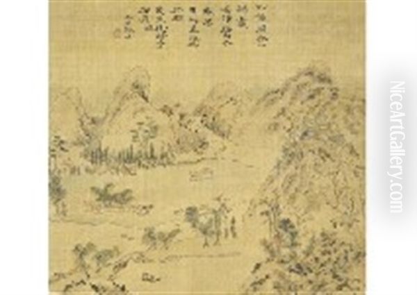 In Uragami Gyokudo’s Landscape, one is immediately enveloped in a serene yet dynamic world where ink washes dissolve into misty mountains and meandering rivers. Created during Japan’s Edo period (late 18th to early 19th century), this masterpiece embodies the nanga (Southern School) tradition, inspired by Chinese literati painting but infused with a distinctly Japanese sensitivity. Gyokudo’s brushwork is at once spontaneous and deliberate, blending soft gradients with stark, expressive strokes to evoke the sublime grandeur of nature. As a key figure in Japanese literati art, Gyokudo rejected rigid academic norms, favoring emotional authenticity and poetic resonance. This work stands as a testament to bunjinga (scholar-painting) ideals—where landscapes serve as extensions of the artist’s inner spirit—cementing its place in East Asian art history as a bridge between intellectual refinement and organic beauty.