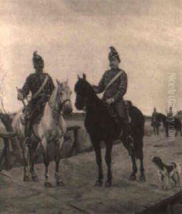 Valdemar Irminger’s Dragoner Til Hest (Dragoon on Horseback) is a striking example of 19th-century Danish Romanticism, blending dynamic movement with meticulous detail. The painting captures a mounted dragoon in mid-motion, his uniform crisply rendered, while the horse’s muscular energy suggests both power and grace. Irminger, known for his military and equestrian scenes, infuses the work with a sense of nobility and drama, characteristic of the Romantic era’s fascination with heroism and nature. The subdued yet rich palette—deep blues, earthy browns, and highlights of gold—creates a somber yet dignified mood. Historically, the piece reflects Denmark’s military heritage, while its execution places it within the Northern European tradition of realistic yet emotive portraiture. Though less widely known than French or English Romantic works, Dragoner Til Hest exemplifies the quiet intensity of Scandinavian art from this period.