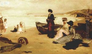 In Vicente Palmaroli Y Gonzalez's A Summer's Afternoon At The Beach, the canvas comes alive with leisurely elegance—sun-kissed figures lounge along the shore under a luminous sky, their billowing fabrics and relaxed postures embodying 19th-century bourgeois leisure. Painted during Spain's late Romantic period, Palmaroli, a court painter to Queen Isabella II, masterfully blends realism with subtle lyrical touches, capturing the interplay of light on silk and sand. This work reflects the European fascination with seaside recreation during the Industrial Revolution, bridging the intimacy of genre painting and the grandeur of historical scenes. While less radical than his Impressionist contemporaries, Palmaroli’s technical precision and narrative charm secured his legacy as a transitional figure between academic tradition and modern sensibilities, offering a window into Spain’s social metamorphosis.