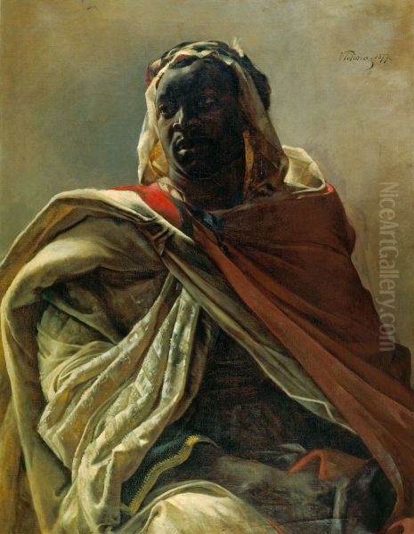 For contemporary display, this artwork demands thoughtful placement to honor its historical weight while maximizing visual impact. A library or study with warm walnut shelving would complement its sepia-toned palette, while indirect LED lighting could mimic the painting’s soft chiaroscuro without UV damage. In minimalist offices, its 24×18" dimensions (approximate) create a commanding focal point when paired with dark bronze frames and cream linen matting—the rich contrast elevates boardroom sophistication. For eclectic interiors, layer it alongside African textiles or pre-Raphaelite works to spark cross-cultural dialogues. Avoid overcrowding; its detailed facial expression reads best at eye level with 3-5 feet of breathing space. Consider echoing the subject’s burnt sienna headwrap through leather armchairs or terracotta pottery nearby for seamless chromatic storytelling.