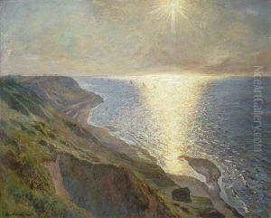 Viggo Christian Frederick Pedersen's Sunset Over The Sea is a luminous example of Danish Impressionism, radiating the quiet majesty of nature in twilight. The painting captures a vast seascape bathed in warm hues of orange, pink, and gold as the sun dips below the horizon, casting shimmering reflections on the gently undulating waves. Pedersen, active in the late 19th to early 20th century, was renowned for his atmospheric landscapes that bridged Romanticism’s emotional depth with Impressionism’s loose brushwork and light sensitivity. This work epitomizes his ability to convey transient natural phenomena with lyrical elegance, positioning him as a key figure in Scandinavian plein air painting. The serene yet dramatic composition invites contemplation, evoking a sense of fleeting beauty—a hallmark of his oeuvre and a testament to Denmark’s golden age of landscape art.
