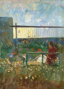 The Artist's Wife And Son Johannes At A Bed Of Poppies In The Garden Of The Family Villa Karlsberg Near Hillerod
