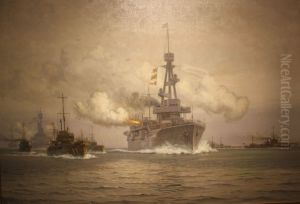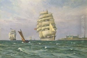 "Rebet Maerssejlskuling i Kattegat. Skoleskibet Georg Stage og andre Sejlere passerer Kullen"