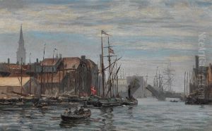 Sejlbade i Kobenhavns Havn med Frederiks Kirke i baggrunden.
