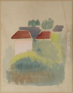 Opstilling Med Boger, Aesker, Papirruller Og Hvid Opsats Med To Appelsiner. Omkr. 1949