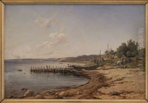 Strandparti Fra Nordsjaelland (hornbaek?) I Baggrunden Den Svenske Kyst