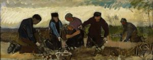 Vrouw Zittend Voor Een Geopende Deur, Aardappels Schillend