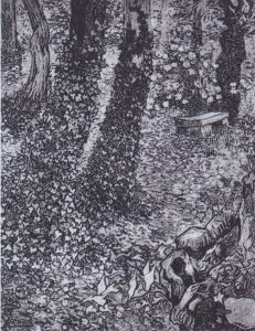 Trees with ivy in the garden of the hospital of Saint-Paul