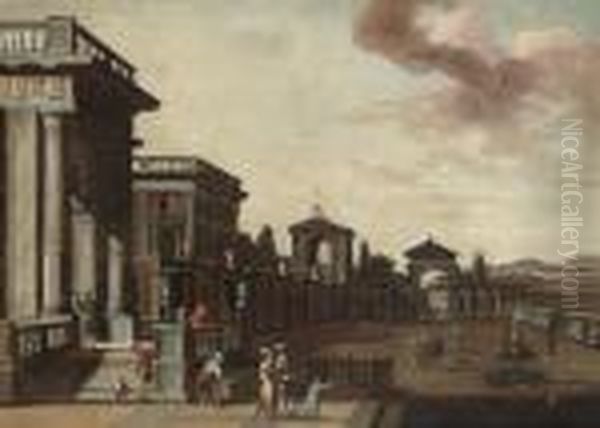 A Capriccio Of A Classical Palazzo With Elegant Figuresconversing