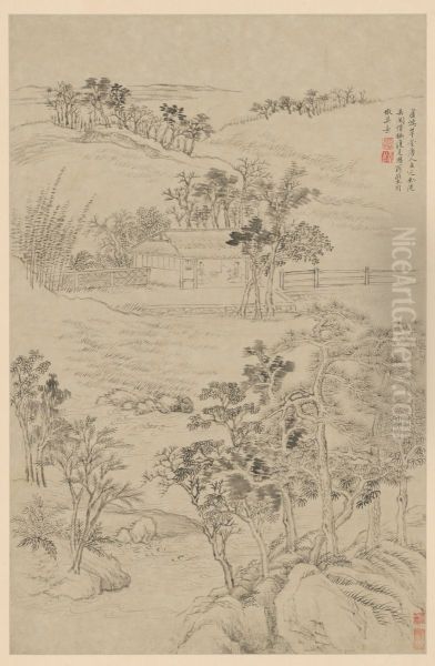 <<wang hui fang gu shan shui ce>> Oil Painting by Wang Hui