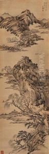 Wang Yu's Landscape exemplifies the poetic transcendence of traditional Chinese shanshui (mountain-water) painting through contemporary sensibilities. Executed with meticulous ink brushwork on paper, the composition unfolds a mist-laden valley where jagged peaks emerge from washes of pale gray, their ink contours dissolving like echoes in the Taoist void. A solitary scholar's hut nestles mid-ground, anchoring the viewer’s gaze amidst the dynamic interplay of voids (留白) and inscribed forms—a hallmark of Yuan dynasty literati aesthetics revitalized. Dated to Wang’s mature period (2010s), this work bridges Bada Shanren’s expressive minimalism with 21st-century environmental consciousness, its restrained palette of ink gradations (墨分五色) evoking ecological fragility. Now housed in the Guangdong Museum of Art, Landscape represents a critical reappraisal of Neo-Confucian ideals in globalized contexts, earning recognition at the 2016 Shenzhen Contemporary Ink Biennale as a paradigm of "post-ink" experimentation.