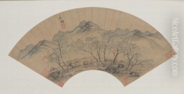 Wen Zhengming's "Tao Liu Chun Yan Shan Ye" (Spring Mountains and Peach Blossoms) is a poetic gem of Ming Dynasty literati painting, embodying the refined aesthetics of the Wu School. The delicate ink wash captures mist-wrapped mountains where peach blossoms blush beneath willow trails, creating an ethereal dialogue between empty voids and elegant brushstrokes. As pupil of Shen Zhou and seminal figure in the "Four Masters of Ming," Wen perfected this album-leaf-sized scroll circa 1535, distilling Suzhou's garden culture into scholarly ideals of reclusion. Its restrained palette of ink gradations punctuated by faint mineral pigments revolutionized literati conventions, making it a cornerstone for subsequent Qing Dynasty Eccentrics like Bada Shanren.