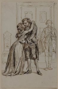 Italian Girl Kisses The Father On His Hand. Unsigned