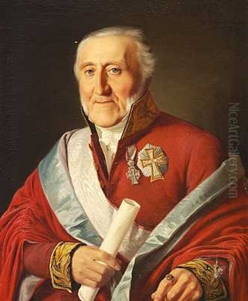 Anker Vilhelm Frederik Bornemann I Sin Rode Embedsmandsjakke Over Hvilken Rod Kappe Med Bla Borter