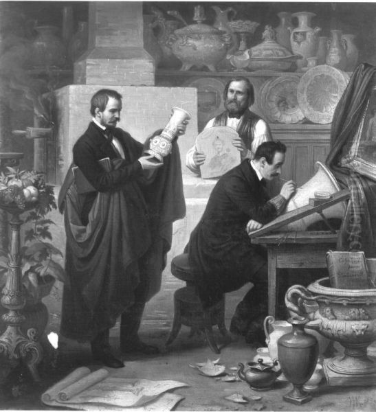 Ein innerer Raum der Porzellanmalereianstalt in Munchen, in welchem der Inspektor und einige Kunstler beschaftigt sind
