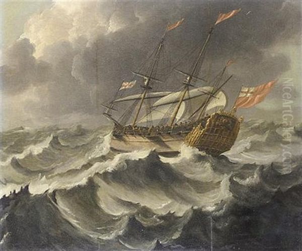 An English Merchant Vessel With A Spanish Barge In Choppy Seas (+ An English Frigate In Stormy Seas; Pair)