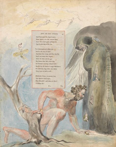 For a refined yet contemplative decor scheme, this Blake illustration would elevate a study or lounge with its poetic harmony. Opt for a gilded neoclassical frame to echo its 18th-century origins, and hang it at eye level in soft, natural lighting to amplify its delicate hues. Pair it with muted earth tones (sage, parchment, or slate blue) in furnishings to avoid visual competition, while organic textures like linen or aged wood will complement its pastoral theme. A smaller-to-medium size (approximately 16"x20") ensures intimacy without overwhelming the space. In a office, it would inspire creativity beside a minimalist desk or bookshelf, balanced with brass accents and subdued greenery. Blake’s Ode on the Spring is not merely art—it’s an invitation to linger in tranquility.