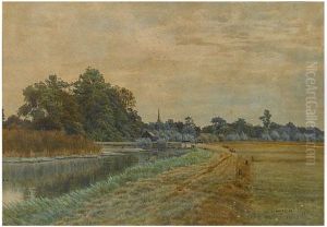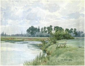 The distant church spire of All Saints Church, St. Ives, from the River Ouse , 1898