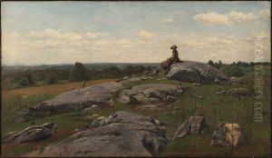 William Hart’s Albany from the East Side captures the tranquil beauty of the Hudson River Valley with a masterful blend of realism and lyrical atmosphere. Painted in 1870, this oil landscape reflects Hart’s affiliation with the Hudson River School, a 19th-century American art movement celebrated for its romanticized, detailed depictions of nature. The painting presents a panoramic view of Albany, bathed in soft, golden light that enhances the serenity of the scene—rolling hills, a calm river, and a distant cityscape. Hart’s meticulous brushwork and use of luminous tones echo the movement’s reverence for the sublime in nature. While less prominently known than contemporaries like Frederic Church or Thomas Cole, Hart’s works like this one are valued for their pastoral elegance and contribution to the American landscape tradition, embodying the era’s optimistic vision of the frontier.