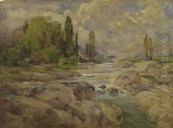 William Henry Holmes’s The Normal Rock Creek is a captivating late 19th-century landscape that masterfully blends scientific precision with artistic lyricism. Depicting a serene Rocky Mountain valley, the painting balances geological accuracy—reflecting Holmes’ training as a geologist—with the Hudson River School’s romantic sensibility. Sunlight filters through the rugged cliffs, casting warm hues upon the creek’s crystalline waters, while meticulous brushwork renders rock strata with near-scientific clarity. Created during Holmes’ tenure with the U.S. Geological Survey (1870s-1880s), the work exemplifies "explorer-artist" traditions, bridging documentation and aesthetics. Its historical significance lies in its dual role as both topographic record and artistic achievement, anticipating later American realism. Unlike purely Romantic contemporaries, Holmes’ fusion of detail and atmosphere makes this piece uniquely transitional in U.S. art history.