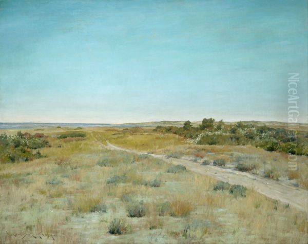 William Merritt Chase’s First Touch of Autumn captures the delicate transition between seasons with mesmerizing warmth and precision. Painted in the late 19th century, this oil-on-canvas piece showcases Chase's mastery of light and texture, blending Impressionist influences with his signature academic realism. The scene likely depicts a quiet garden or park bathed in golden afternoon light, where foliage begins its subtle shift from lush greens to hints of amber and rust. Chase, a leading figure in American Impressionism, excelled at evoking fleeting moments of beauty, and this work exemplifies his ability to balance spontaneity with refined composition. Art historically, First Touch of Autumn represents Chase’s bridge between European techniques and distinctly American sensibilities, making it a cherished example of Gilded Age artistry that continues to resonate for its poetic tranquility.