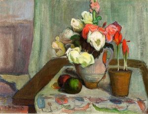 Jablka W Fajansowej Paterze I Dzban Z Kwiatami
