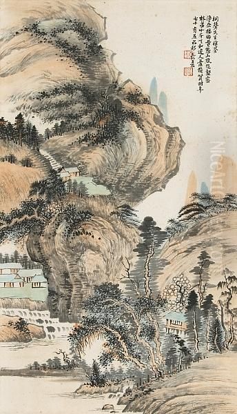 Xia Jingguan's Landscape is a mesmerizing embodiment of classical Chinese ink painting, blending poetic tranquility with masterful brushwork. This hanging scroll, likely dating to the Qing Dynasty, reflects the artist’s deep reverence for nature and mastery of the shanshui (mountain-water) tradition. The composition balances misty, layered peaks with delicate detailing—a hallmark of literati painting’s refined spontaneity. Xia’s use of "flying white" strokes and subtle ink washes creates a dreamlike atmosphere, where voids and forms converse in harmonic contrast. As a disciple of the Four Wangs school, his work bridges the scholarly elegance of the Ming Dynasty and the technical flourish of early Qing painters. Though less documented than his contemporaries, Xia’s landscapes hold niche significance for their adherence to Southern School aesthetics, prioritizing emotional resonance over rigid realism. The deliberate asymmetry and vertical flow guide the viewer’s gaze upward, evoking Taoist ideals of cosmic unity—an enduring theme in East Asian art history.