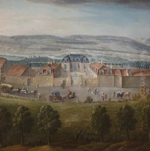 A WOODED LANDSCAPE WITH TRAVELERS ON A PATH