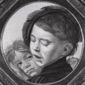 Portrait presume de Madame Boilly, nee Adelaide Leduc, seconde femme de l'artiste, et de ses trois fils Julien, Edouard et Alphonse, dans un cercle peint